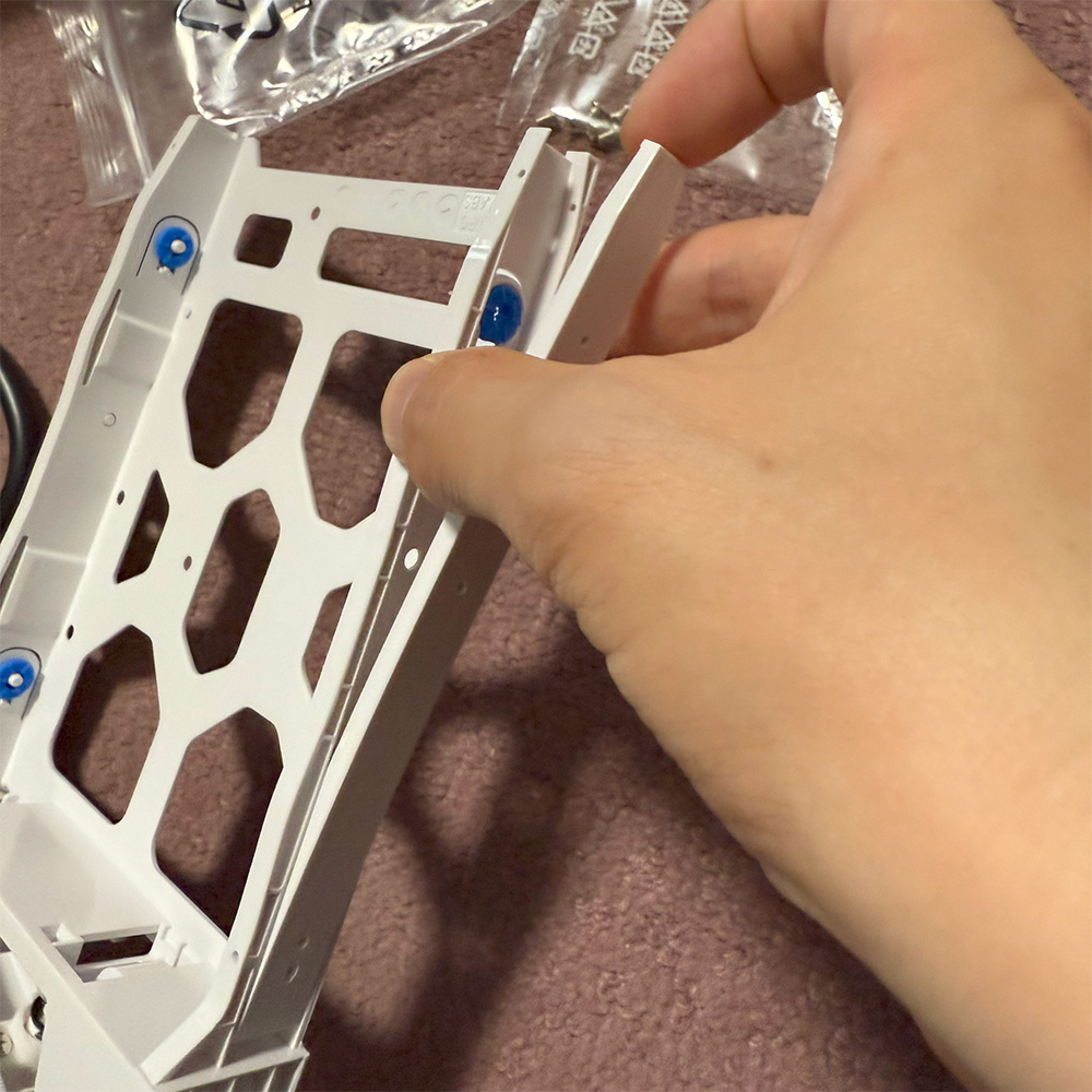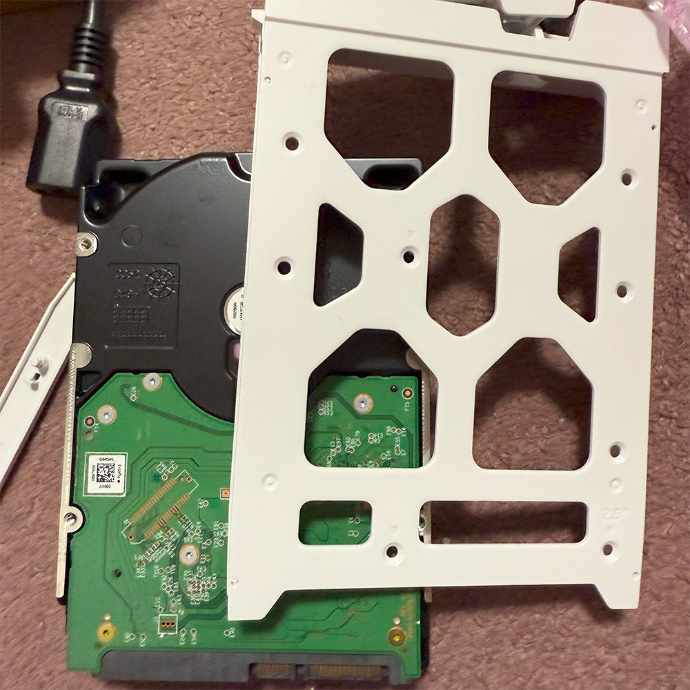 説明書に載っているように、HDDをマウンターの向きを揃える。裏表と上下逆向き注意。