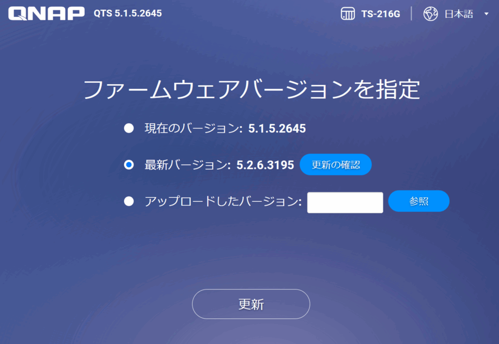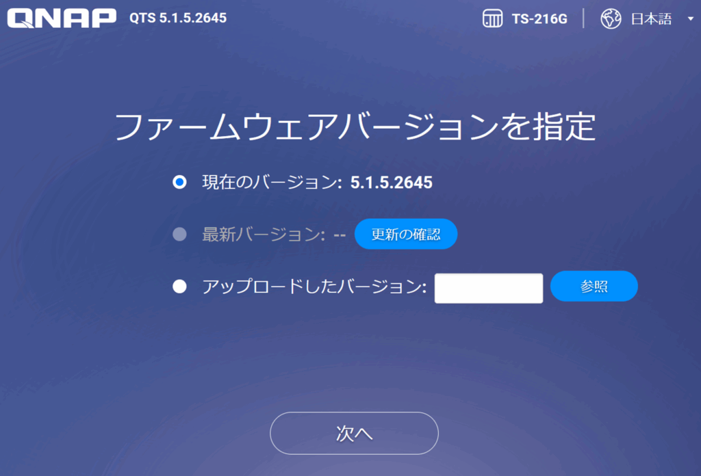 またファームウェアの画面になるが、最新のマークがつくので安心だ。
