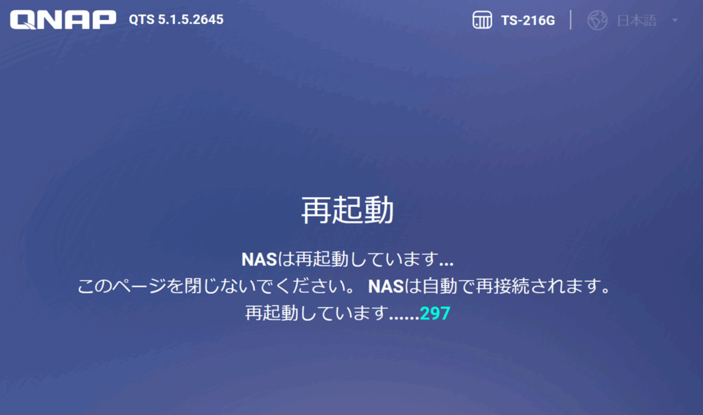 結構時間がかかる。そして再起動に300秒もカウントダウンされる。気長に待とう。