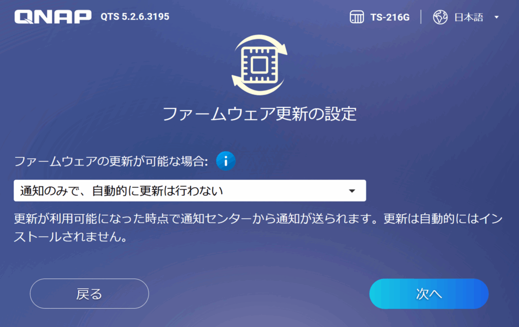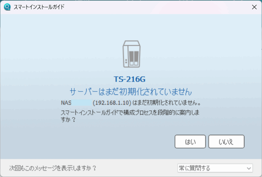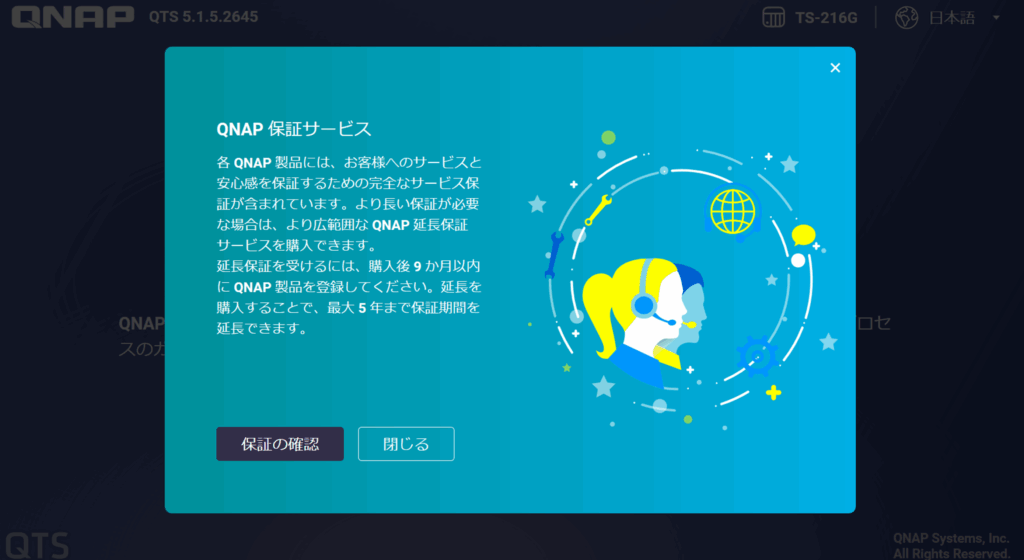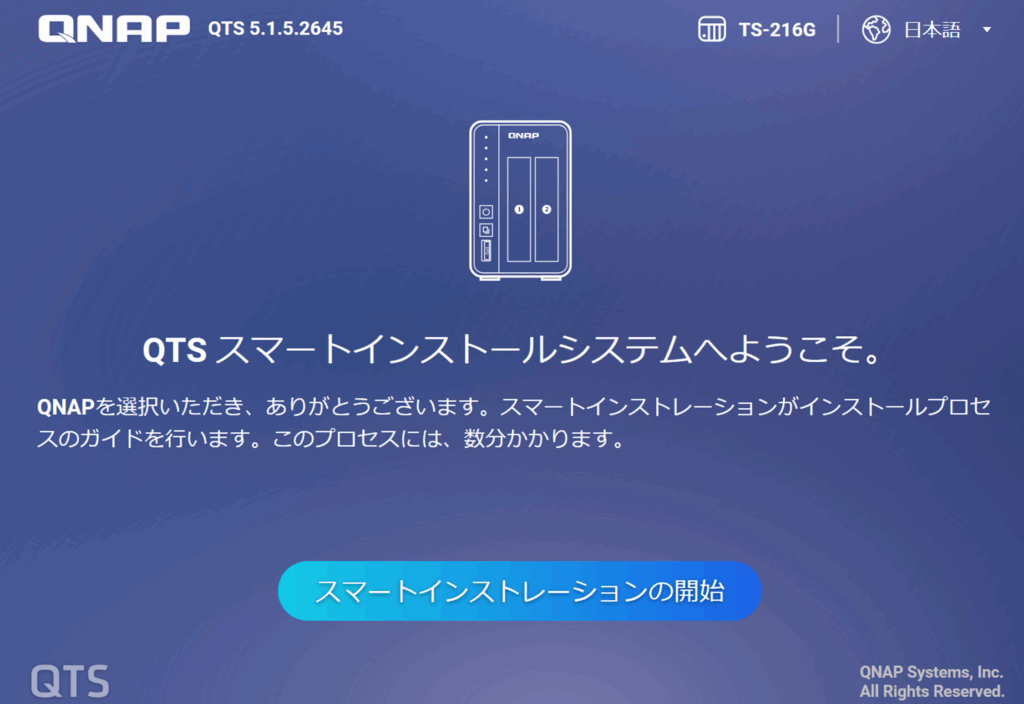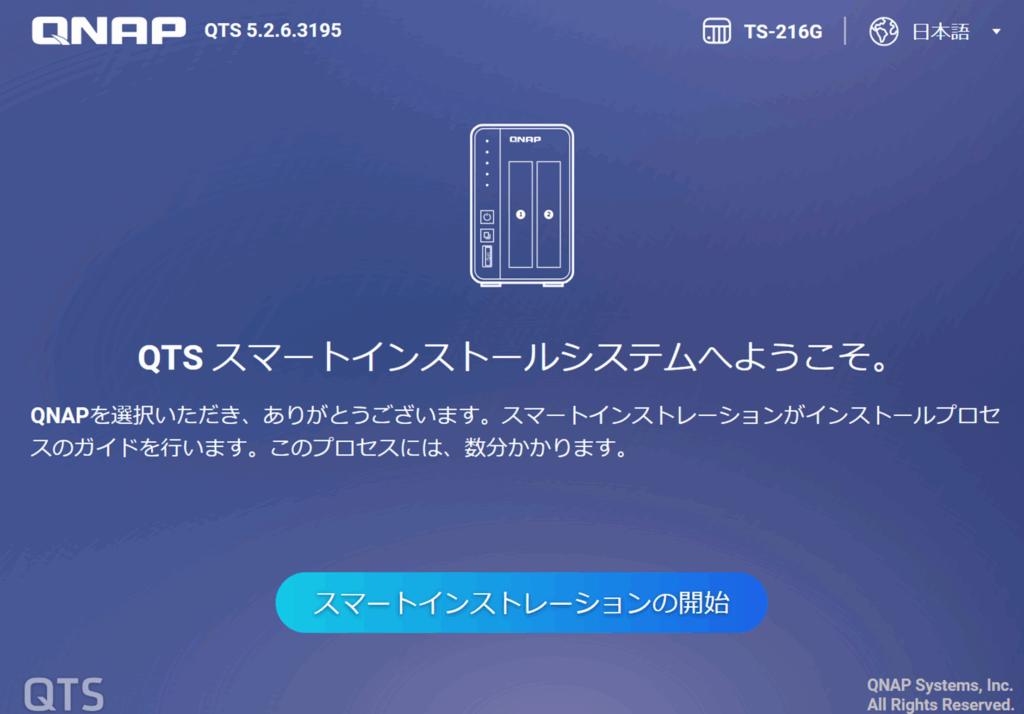 Qfinder Pro経由でNASにアクセスすると、ブラウザが起動し、QTS(QNAP Turbo System)の初期設定ウィザードが表示される。ここで、NAS名の設定、管理者パスワードの登録、ネットワーク設定、RAID構成などを順に設定していく。Qfinder Proはこの導線をスムーズに提供する役割を担っている。