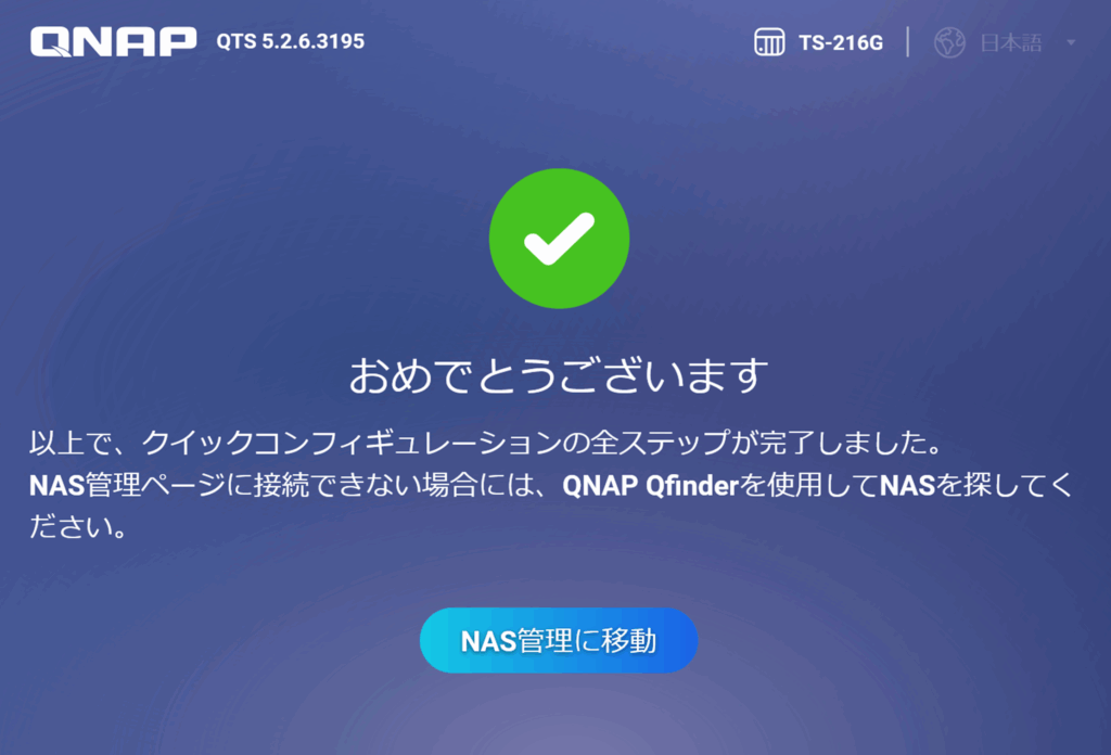 以後、NAS自体の設定は全てブラウザーでの操作となる。なので、WindowsユーザーでもMacユーザーでも実質的に画面の見た目は変わらない。