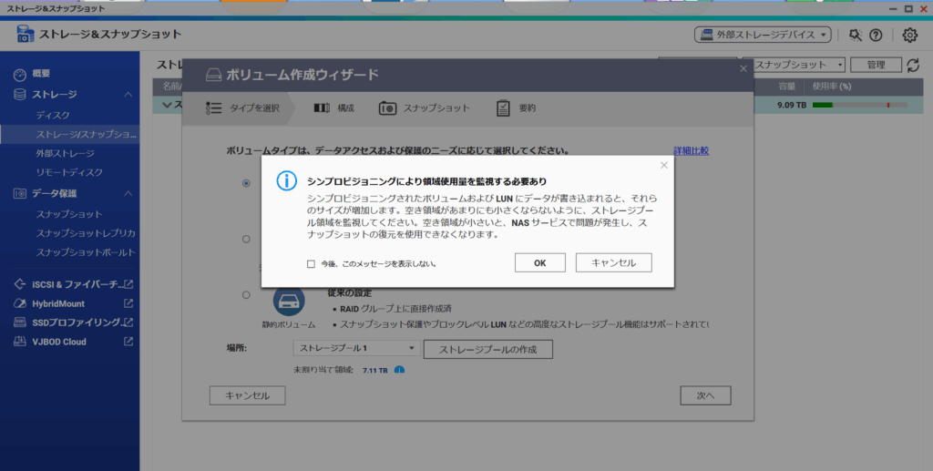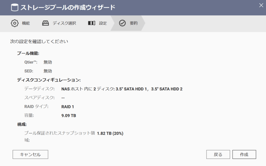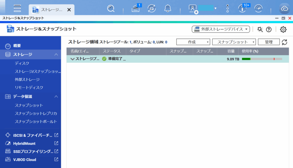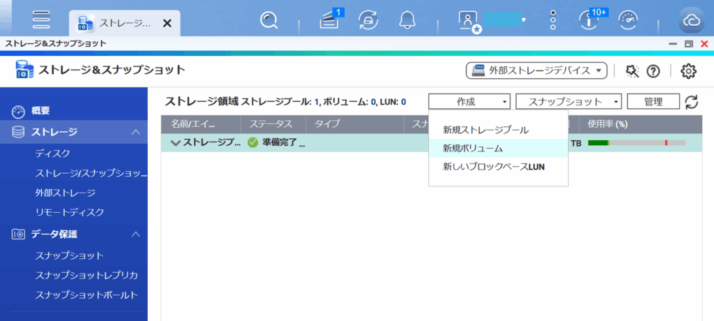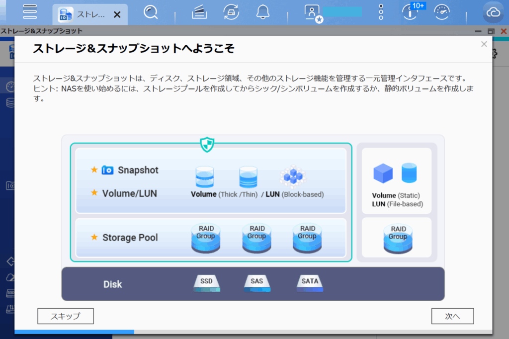 NAS本体の設定をはじめるよ!ストレージ&スナップショット