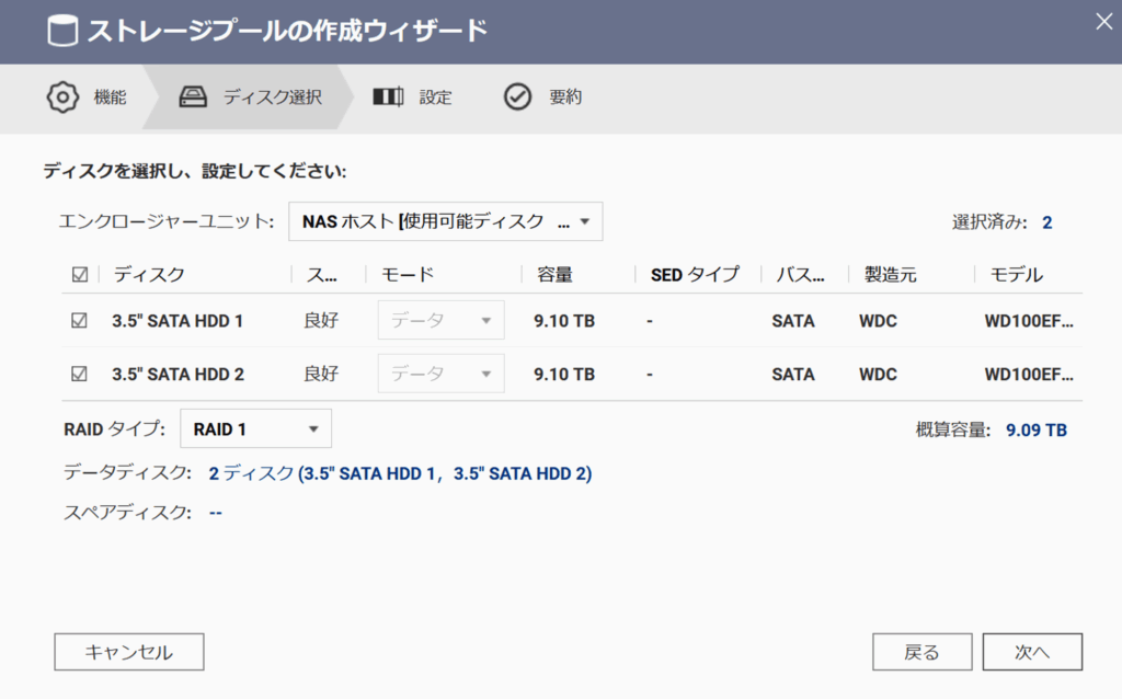 HDD2台なので、RAIDタイプはRAID-1を選んだ。
