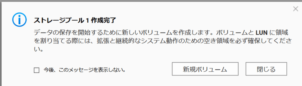 ボリュームを作成しないとストレージとして利用できないので、作成しよう。