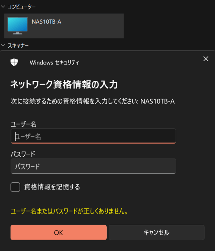 ここで、ユーザー名とパスワードを入力することになるが、これはNASセットアップ時につけたユーザー名とパスワードだ。もし、Windows上にNASが表示されない場合、以下フォルダーパスでアクセス可能だ。