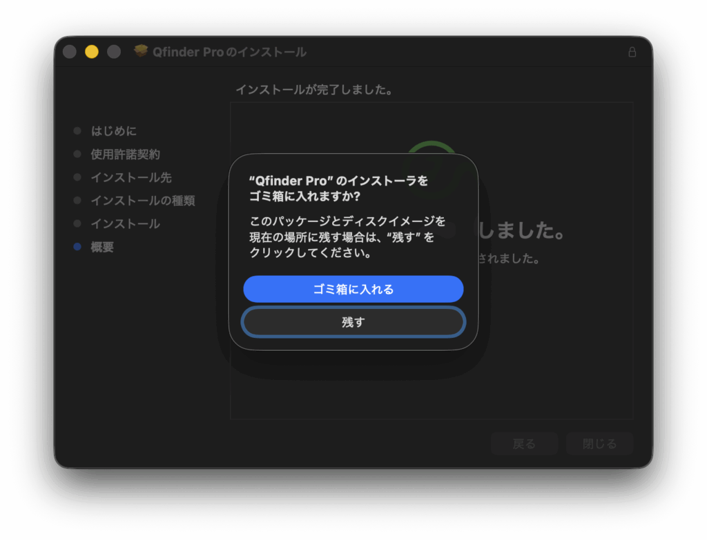 インストールが済めばもう使わないのでゴミ箱に入れて問題ない。もし再インストールが必要になった場合はゴミ箱から戻せばいいだけだ。