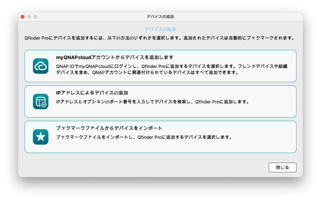 QNAP NASをMacで使用するにはWindowsと同じだがQfinder Proを使う必要がある。