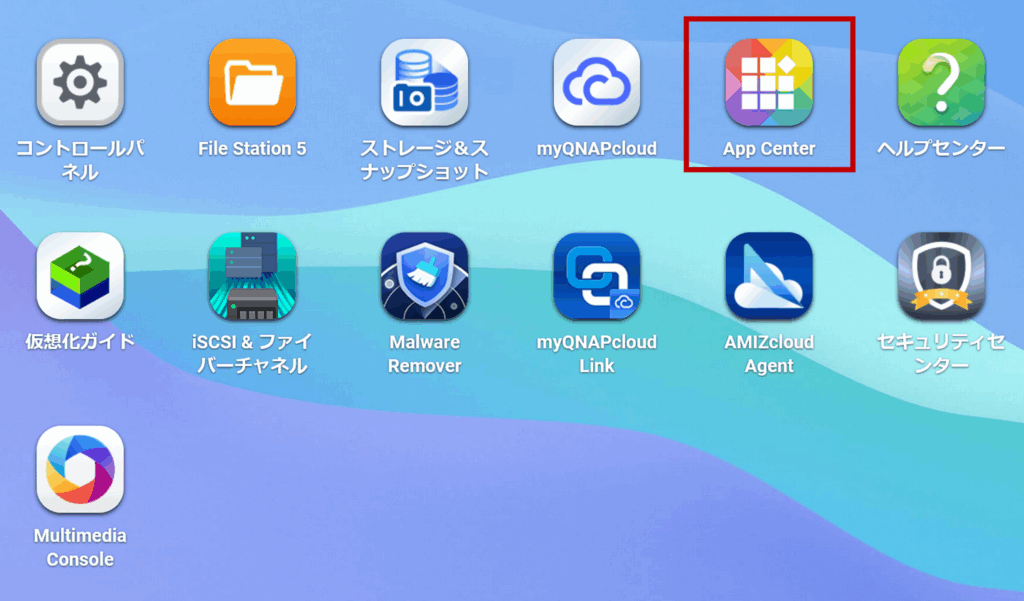 ブラウザーからQTSに入り、App Centerを開く
