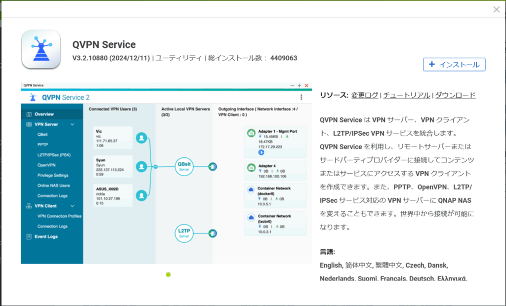 ユーティリティから、QVPN Serviceをインストール