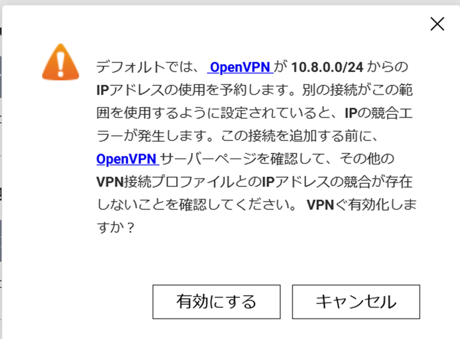 OpenVPNサーバーを有効にする、のチェックボックスをオンにする。