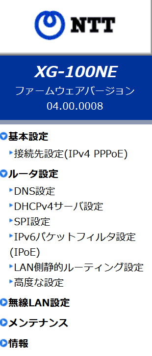 ここではNTTのXG-100NEの場合のポート開放の手順を掲示する。NTTのルーター機能が搭載されたホームゲートウェイは以下アドレスでログインできる。また、設定を変えていなければ通常のローカルIPアドレス192.168.1.1をブラウザーのURL入力欄に打ち込んでもいい。