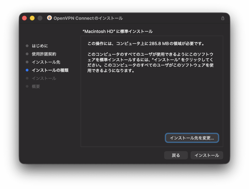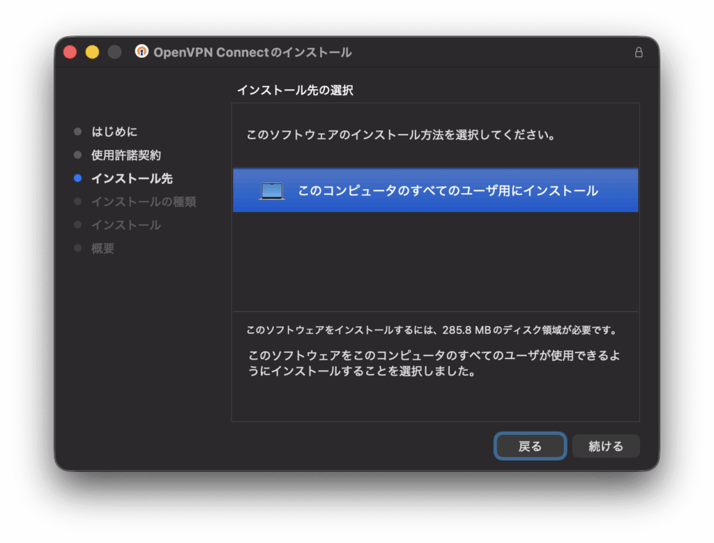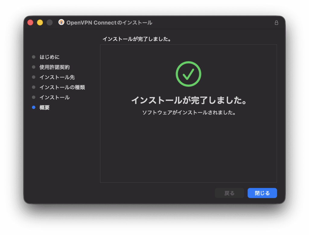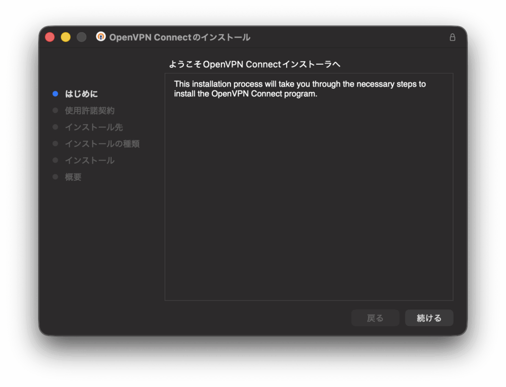 クライアント側の設定。OpenVPN Connect for macOSをインストールする