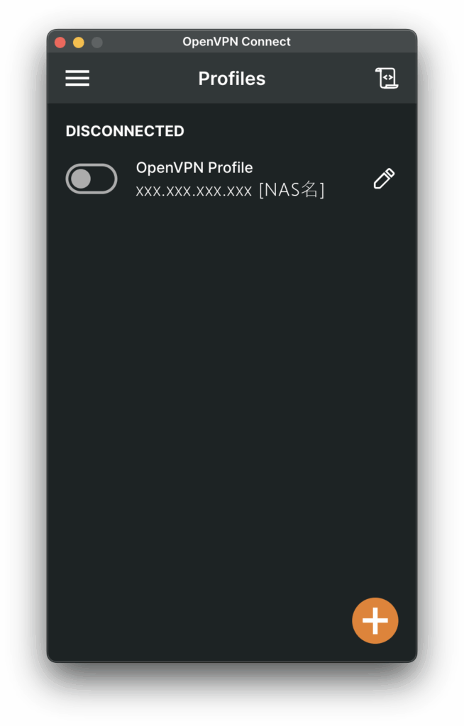 ## 2. Double click [NAS名].ovpn file to create new connection profile.