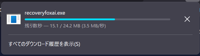 直ちにダウンロードが開始される。プログラムのサイズは24.2MBと相当軽い。筆者の環境では3秒でダウンロードできた。